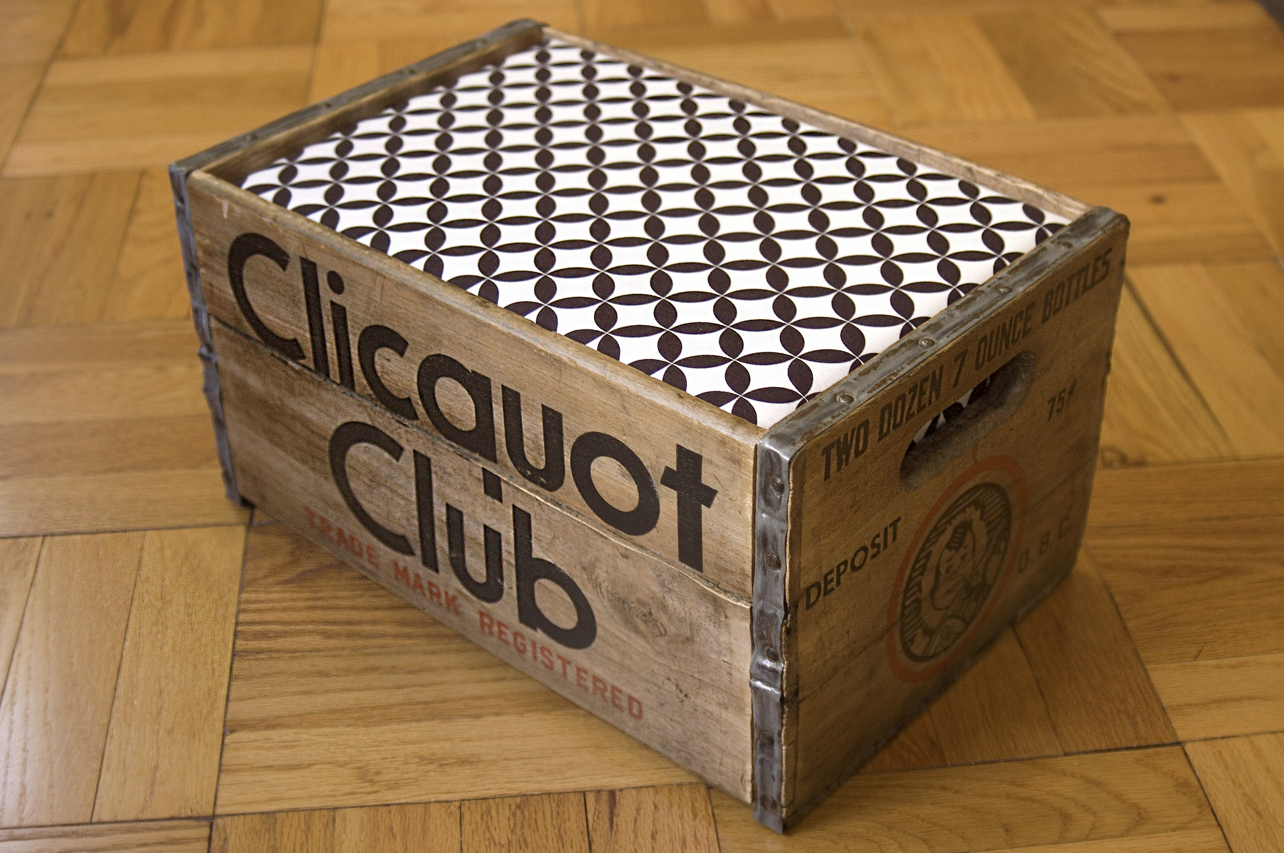 Pet furniture which utilizes a fabric-wrapped, interior wood and foam base, housed in a unique collection of vintage soda crates.